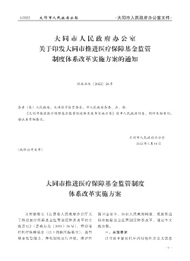 《大同市推进医疗保障基金监管制度体系改革实施方案》 经市人民政府同意,现印发给你们,