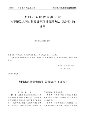 关于印发大同市科技计划项目管理办法 (试行) 的