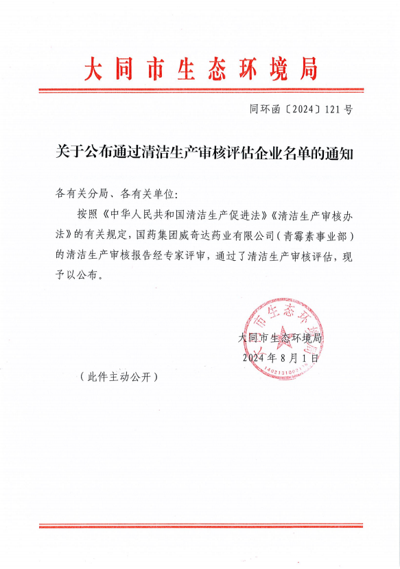同环函【2024】121号 关于公布通过清洁生产审核评估企业名单的通知