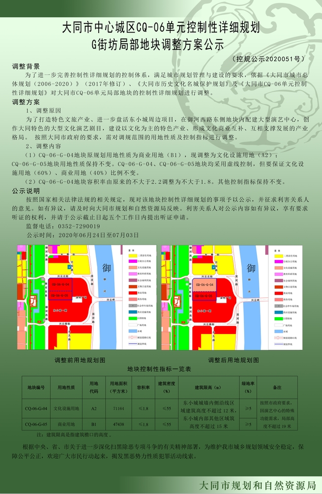 大同市中心城区CQ-06单元控制性详细规划G街坊局部地块调整方案公示