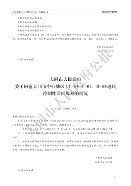 你局 《关于申请对大同市中心城区 LC-05-C-04、D-04 地块控制性详细规划批复的请示》