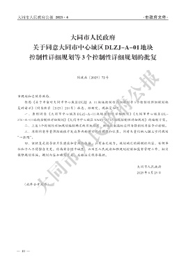 一、原则同意 《大同市中心城区 DLZJ-A-01 地块控制性详细规划》《大同市中心城区 DL-