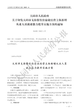 大同市支持餐饮住宿业经营主体新增从业人员同市支持餐饮住宿业经营主体新增从业人员