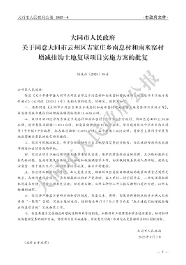 一、原则同意 《大同市云州区吉家庄乡南息村和南米窑村增减挂钩土地复垦项目实施方案》,