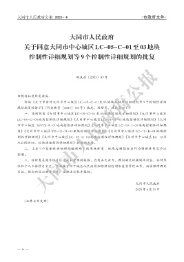 你局 《关于申请对大同市中心城区 LC-05-C-01 至 03 地块控制性详细规划等 9 个控制性详细
