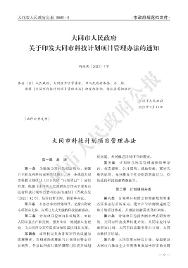 大同市重点产业发展,服务全市一流创新生态建 划、大同市科技成果转化计划、大同市应用基