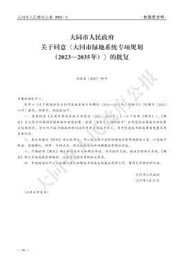 你中心 《关于提请批复大同市绿地系统专项规划 (2023—2035 年) 的请示》(同园字 〔2025〕