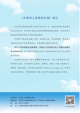 公室主管主办、大同市人民政府公报室编辑的政府出版物,是大同市人