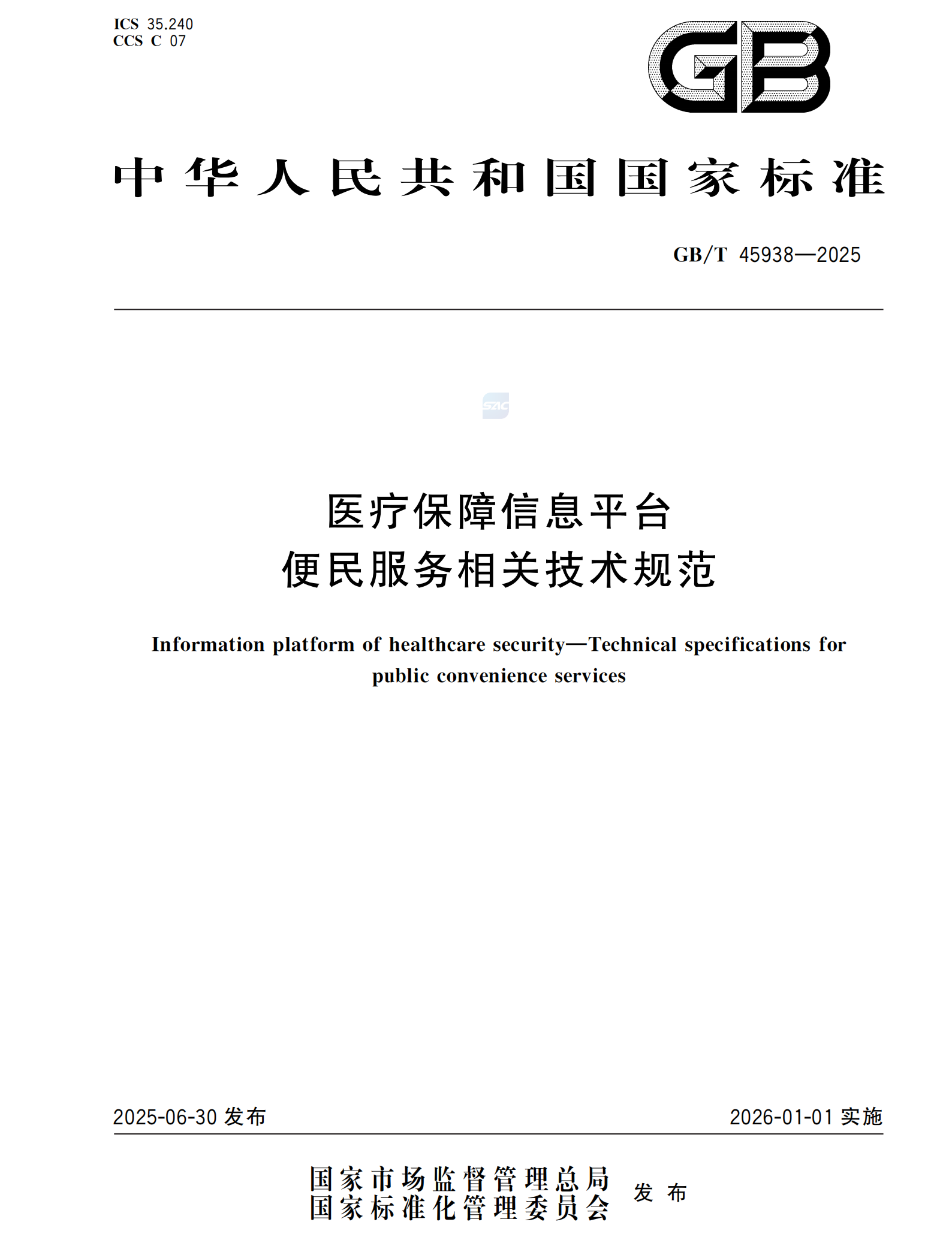 近日,市场监管总局(国家标准委)发布《医疗保障信息平台便民服务相关技术规范》(GB/T 45938—2025)。该标准由国家医疗保障局组织研制,是我国医疗保障领域的首项国家标准,标志着我国医保标准化建设取得里程碑式突破。标准将于2026年1月1日起实施。