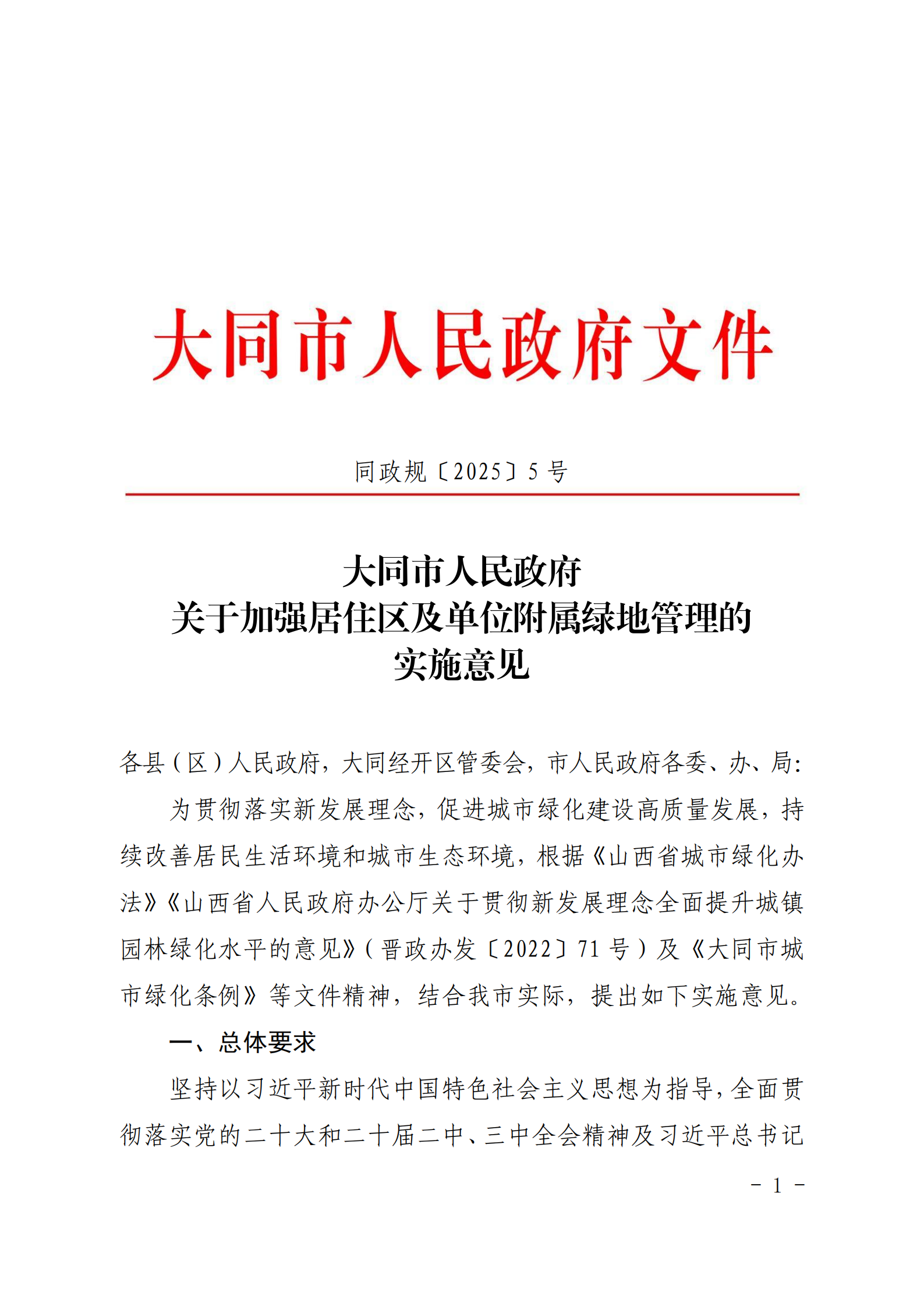 大同市人民政府关于加强居住区及单位附属绿地管理的实施意见