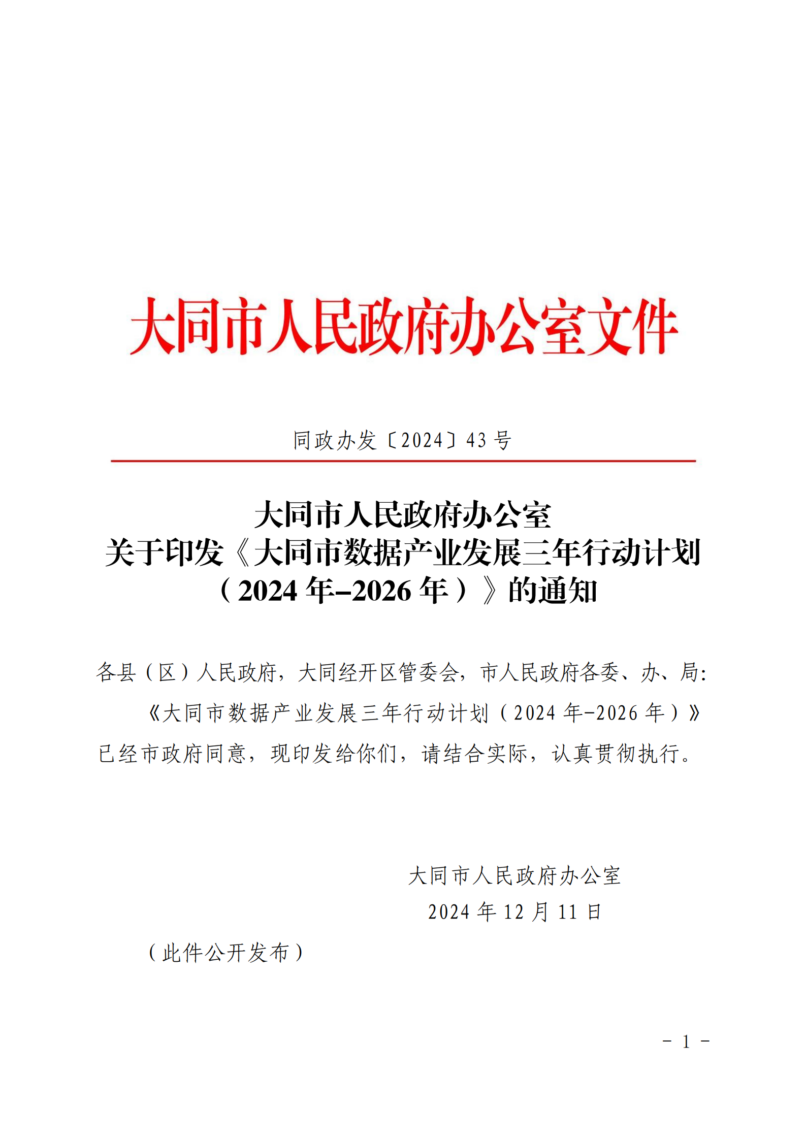 大同市人民政府办公室关于印发《大同市数据产业发展三年行动计划(2024年-2026年)》的通知