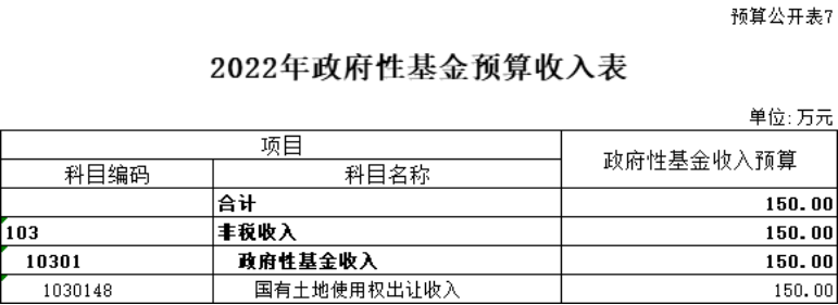 七、大同市工业和信息化局部门2022年政府性基金预算收入预算表