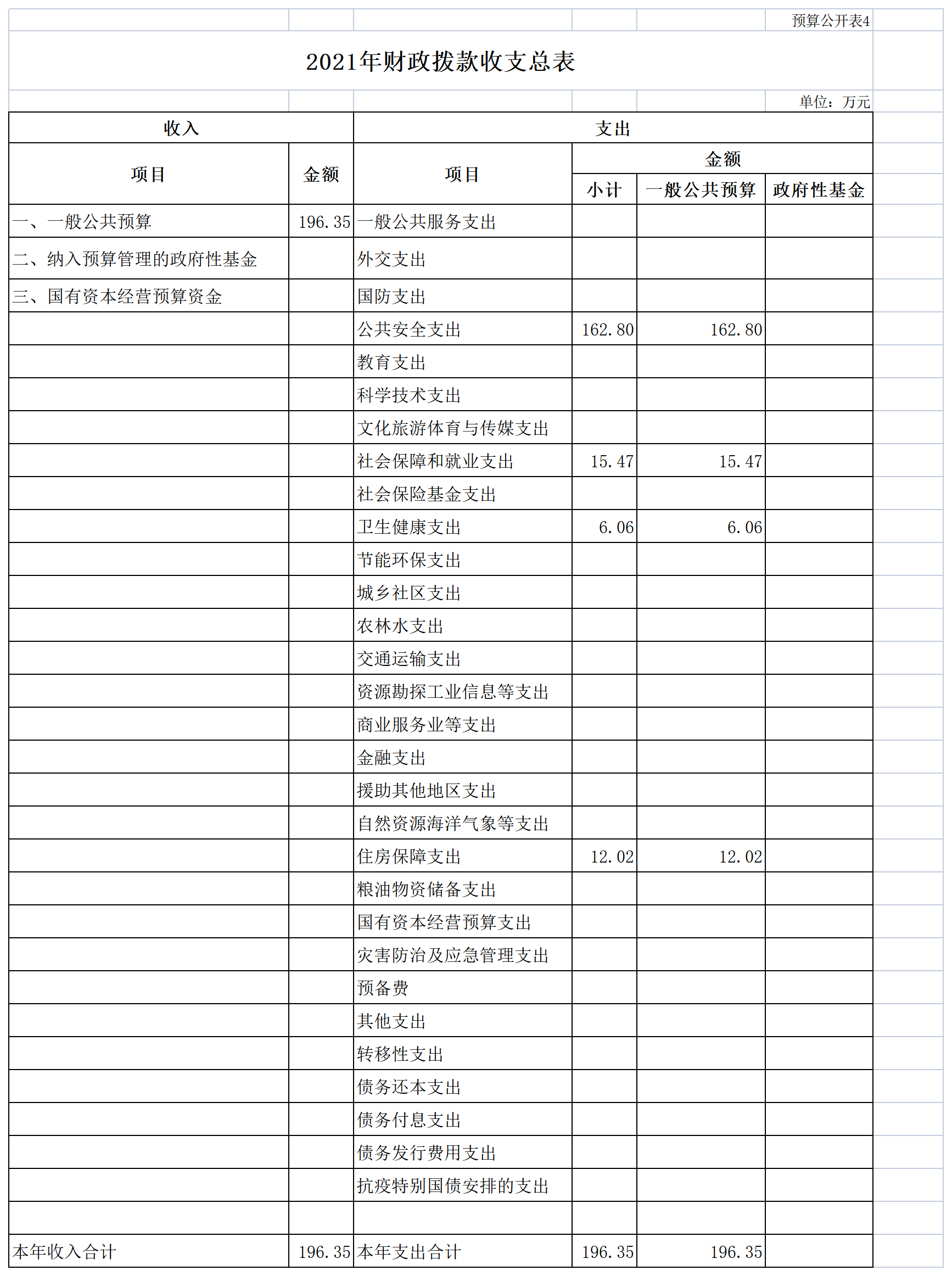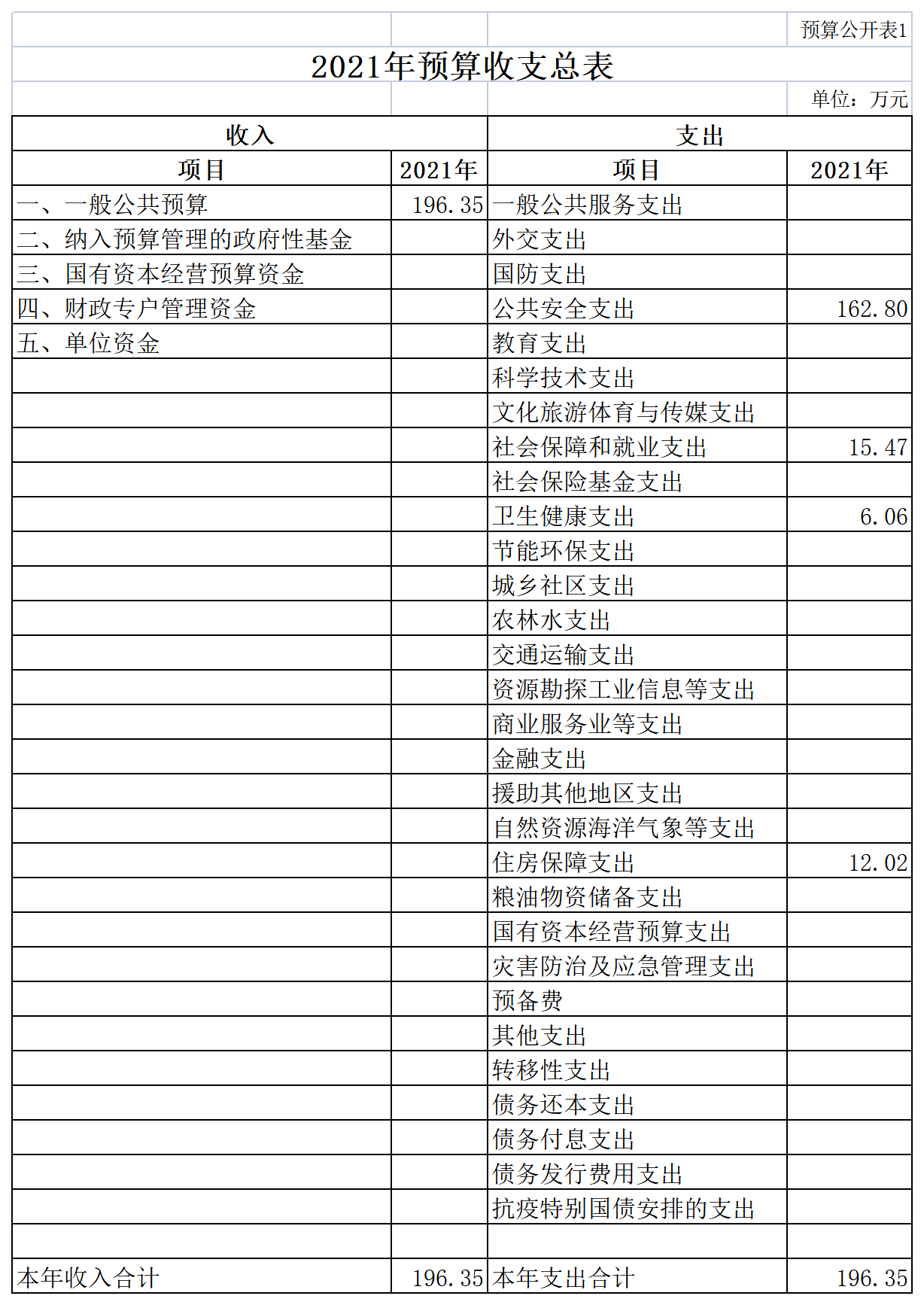 (一)预算收支情况