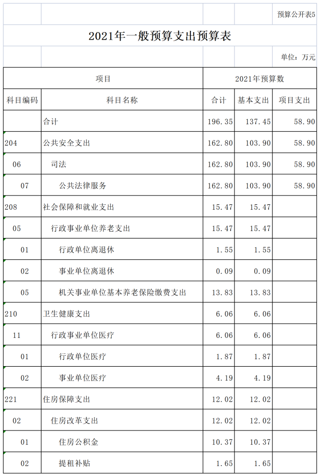 1.2021年基本支出137.45万元,比2020年增加46.08万元,基本支出系按现有人员工资标准和公用经费定额标准核定,增加的主要原因是事业单位改革,并入大同市法律援助中心和大同市人民政府法律服务处。其中:人员支出126.36万元,主要包括基本工资、津贴补贴、奖金、绩效工资、机关事业单位基本养老保险缴费、城镇职工基本医疗保险缴费、其他社会保障缴费、住房公积金、其他工资福利支出、离休费、退休费、生活补助、奖励金;商品和服务支出11.09万元,主要包括办公费、印刷费、手续费、水费、电费、邮电费、取暖费、差旅费、会议费、培训费、公务接待费、劳务费、工会经费、福利费、公务用车运行维护费。