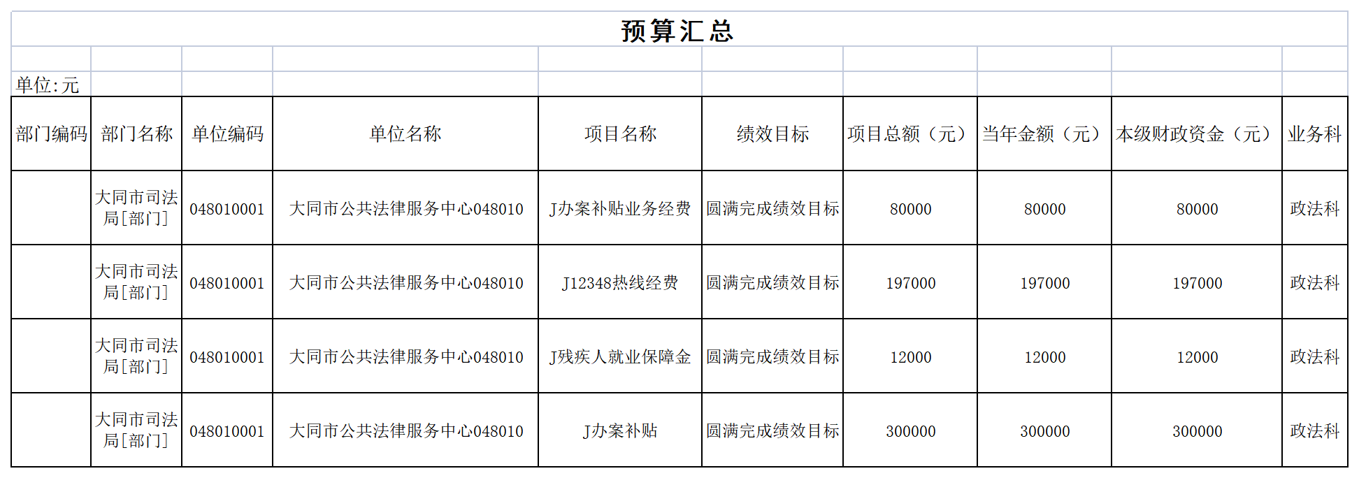 大同市公共法律服务中心单位预算为大同市公共法律服务中心本级预算。