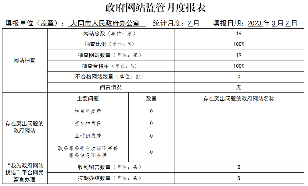 大同市人民政府办公室关于2023年2月全市政府网站与政务新媒体自查情况的报告