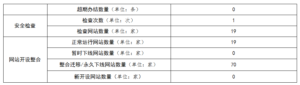 截至2023年2月28日,我市在全国政府网站信息报送系统中备案网站19家。其中,市级政府门户网站1家,县(区)10 家,大同经开区1家,市直部门政府网站7家,运行状态正常网站19家,总体合格率 100%。