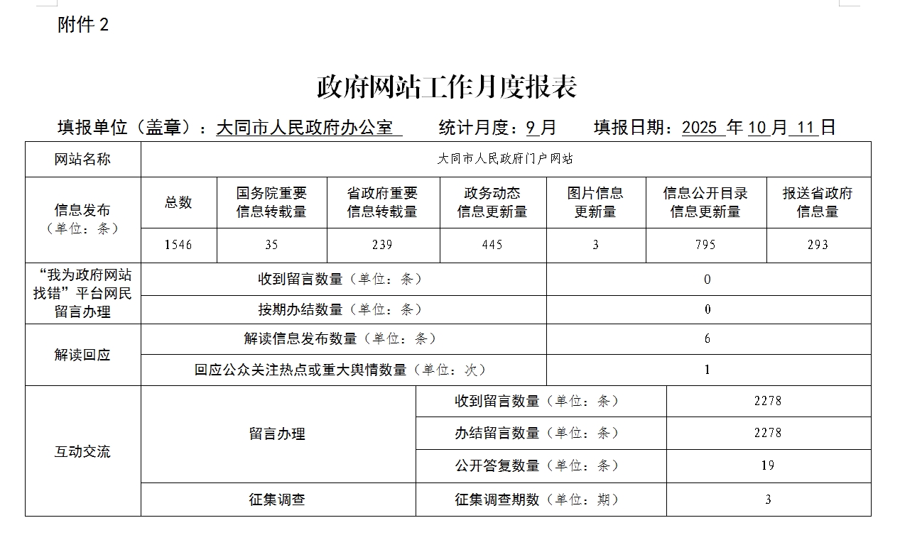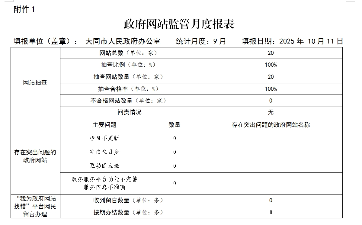 大同市人民政府办公室关于2025年9月全市政府网站与政务新媒体自查情况的报告
