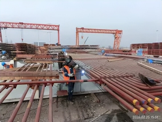 项目技术部负责人介绍,项目自开工以来,整体工程推进高效有序,关键里程碑节点均实现了可控且优于计划的良好态势:锅炉钢架吊装、锅炉受热面吊装、主厂房断水等节点均按计划完成,锅炉大板梁验收、空冷柱到顶、汽机房结构到顶、烟囱外筒到顶、汽机台板就位、汽机房封闭完成、发电机定子穿装等核心节点则实现了不同程度的提前。目前项目各核心施工区域推进成效显著,1号除尘器完成A侧灰斗拼片组合120片,B侧30个灰斗安装就位;送风机房、引风机房等其他主要附属建筑也按计划推进,2号送风机房9.8米层柱梁钢筋模板安装完成,1号引风机电动葫芦安装完成且引风机安装完成30%,空压机房基础、空冷东侧综合管架基础施工完毕,辅机循环水泵房设备安装全部完成。各区域多专业施工协同推进,为后续安装、调试及整体投产目标预留了充足缓冲时间,整体工程进度处于可控且优于计划的良好状态,为项目按期甚至提前投产奠定了坚实基础。