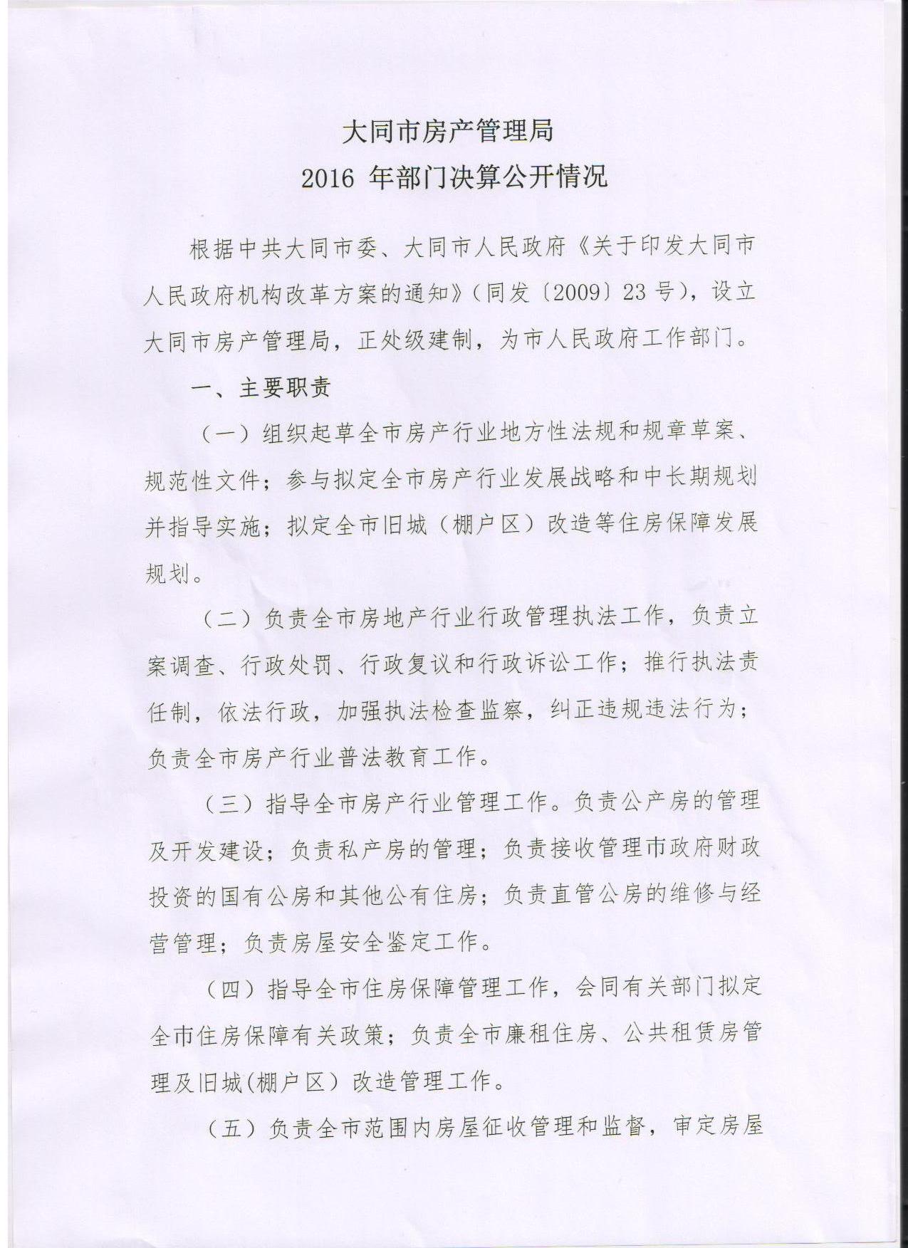 大同市房产管理局2016年部门决算公开情况