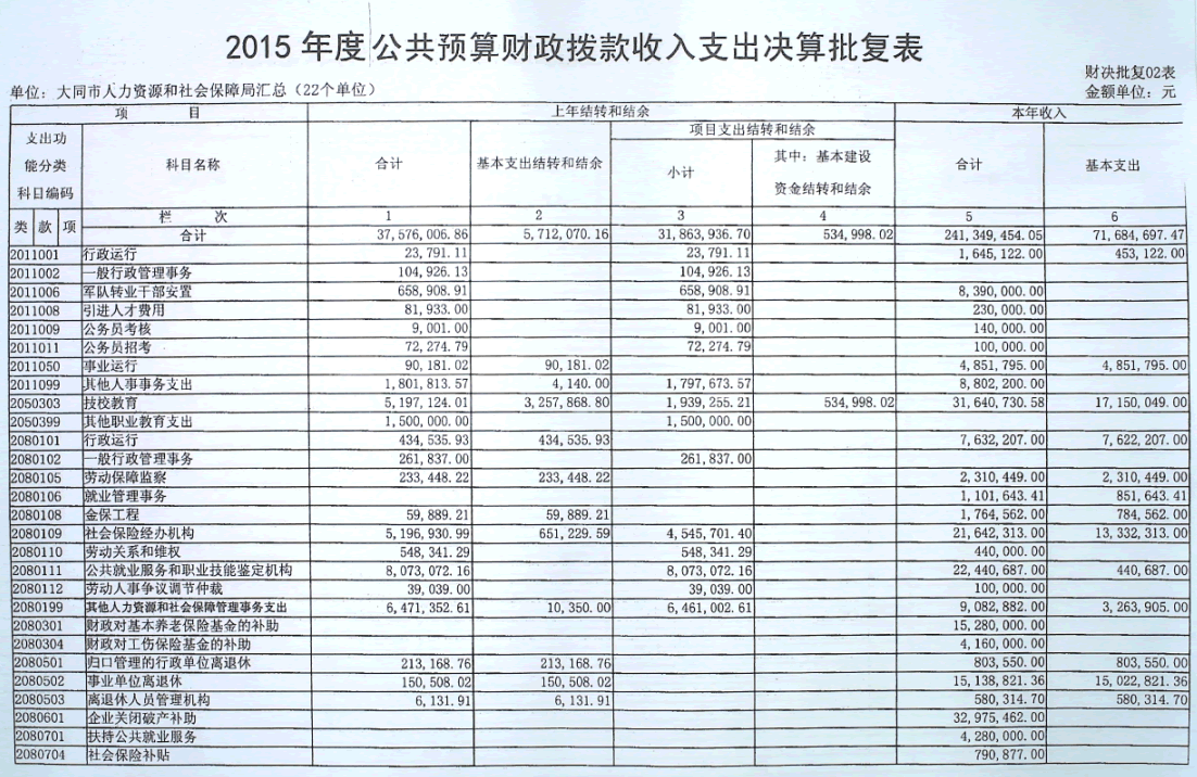 大同市人力资源和社会保障局2015年部门决算公开情况