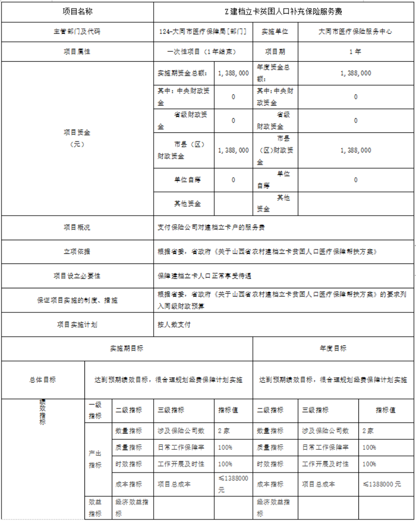 (4)大同市医保中心建档立卡贫困人口补充保险服务费绩效目标申请表