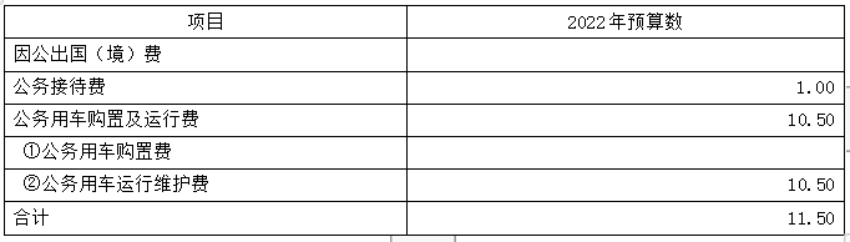 2022年一般公共预算安排的“三公”经费预算11.5万元,比2021年8.6万元增加2.9万元,原因是市局公务接待费增加1万元,2021年无此预算计划;大同市医疗保险服务中心合并同煤公务用车维护费用1.9万元。其中:因公出国(境)费用0万元;公务接待费1万元,比上年增加1万元,公务用车运行维护费10.5万元,比上年8.6万元增加1.9万元;公务用车购置费0万元。