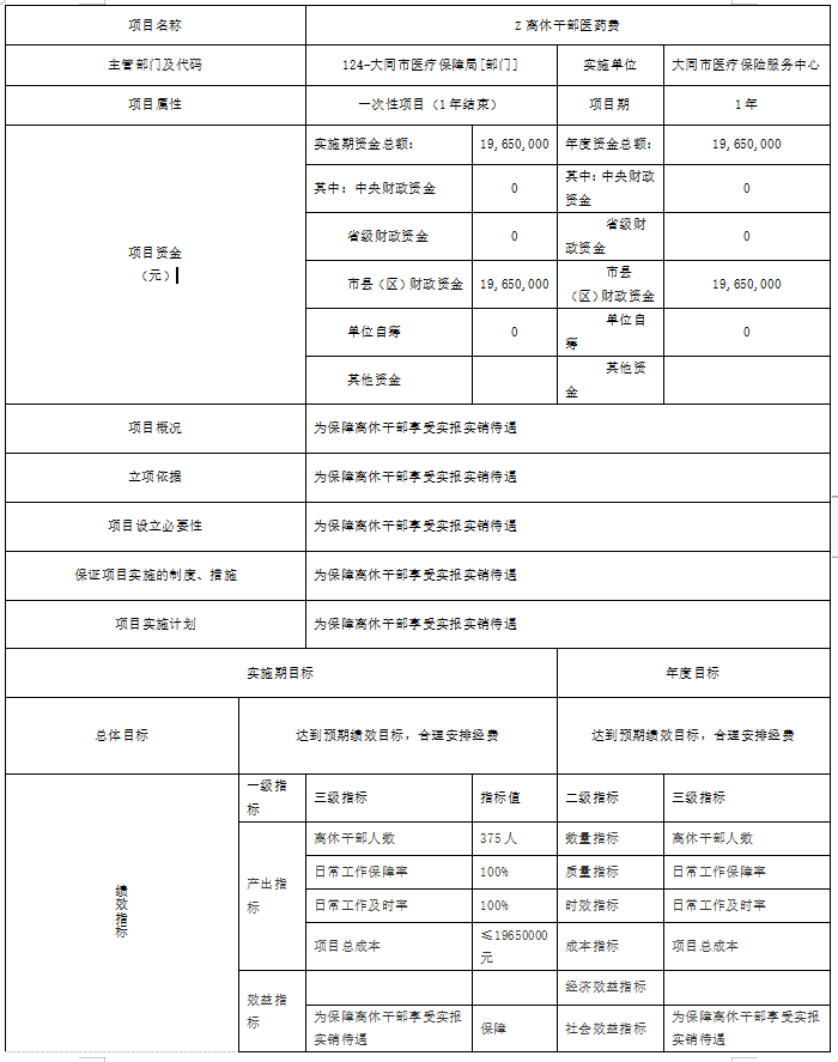 (6)大同市医保中心离休干部医药费绩效目标申请表
