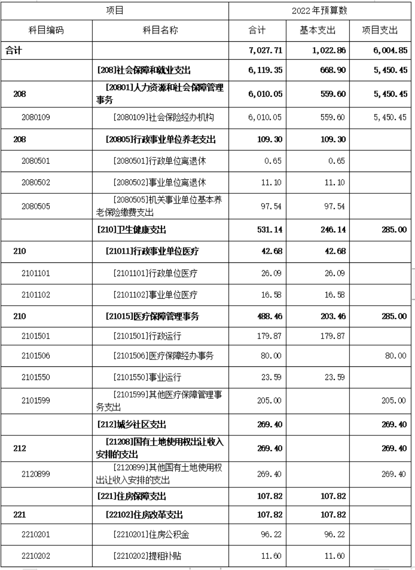 从支出性质和经济科目来看,2022年大同市医疗保障局基本支出1022.86万元,其中人员类支出912.89万元、公用类支出109.97万元;项目支出预算6004.85万元。