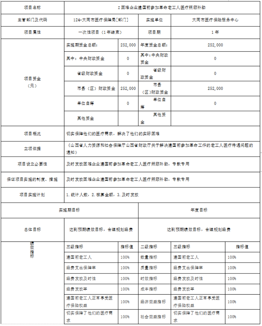 (5)大同市医保中心困难企业建国前参加革命老工人医疗照顾补助绩效目标申请表