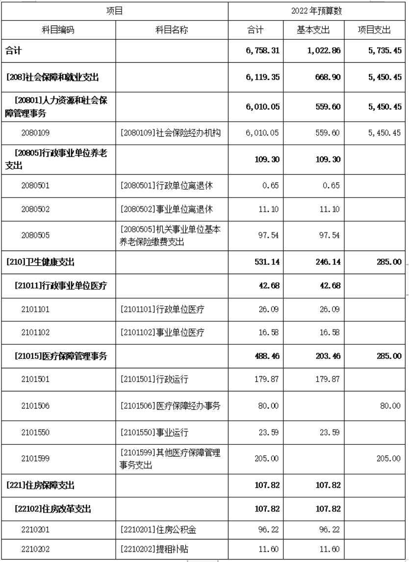 从功能科目来看,2022年大同市医疗保障局一般公共预算6758.31万元,其中,社会保障和就业支出6119.35万元,卫生健康支出531.14万元,住房保障支出107.82万元;政府性基金预算269.4万元,为城乡社区支出。