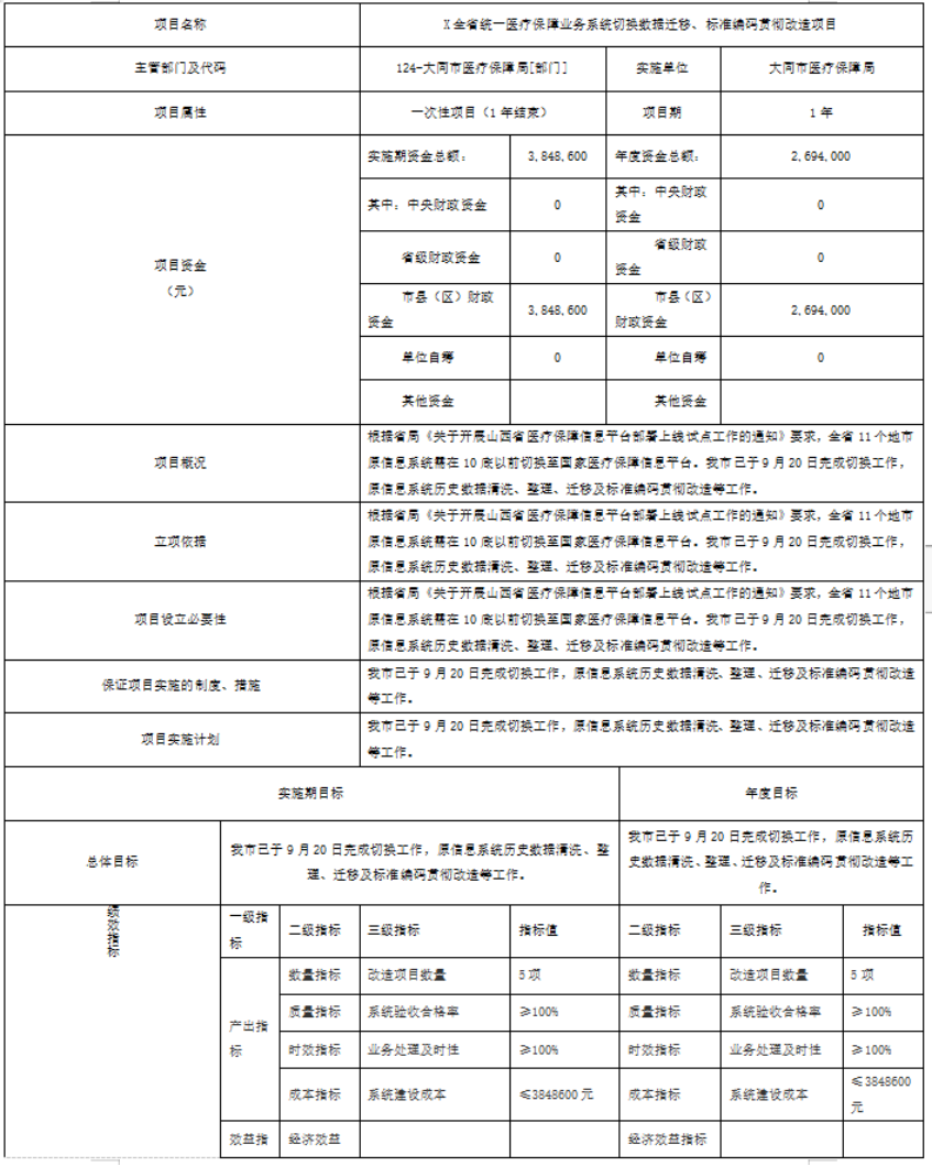 (2)全省统一医疗保障业务系统切换数据迁移、标准编码贯彻改造项目支出绩效目标申报表