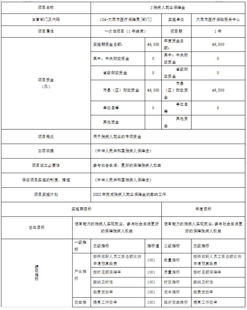 (8)大同市医保中心残疾人就业保障金绩效目标申请表