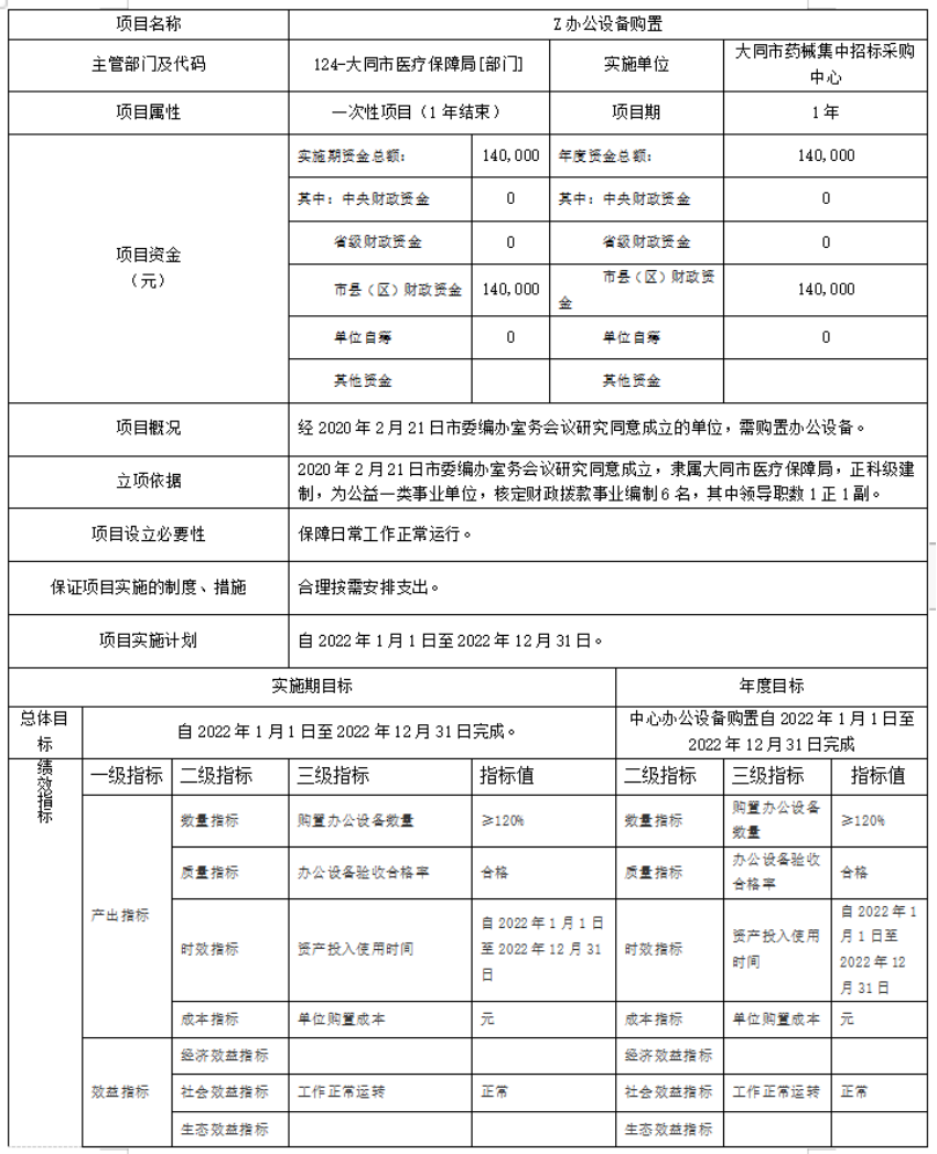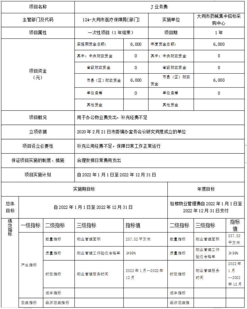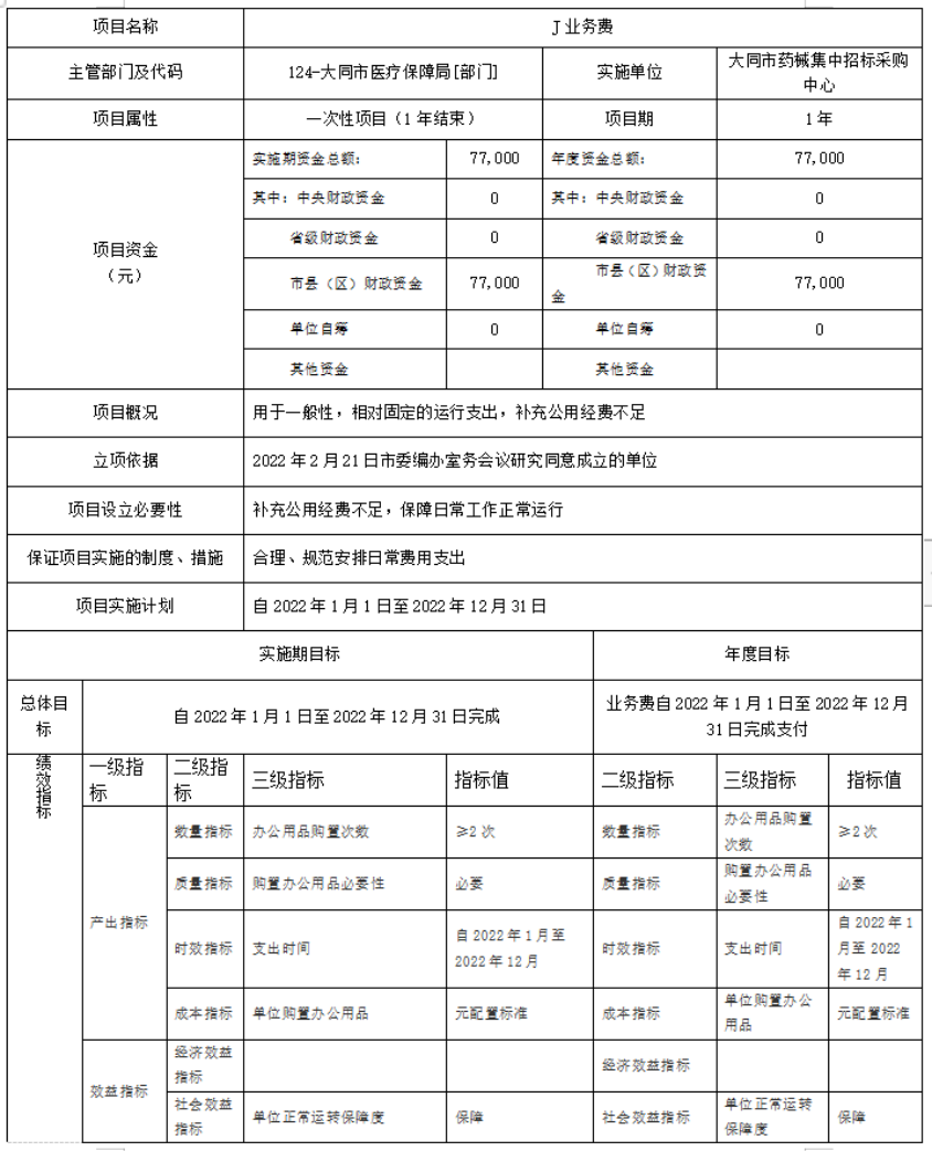 (3)大同市医保中心公务员补充医疗保险绩效目标申请表