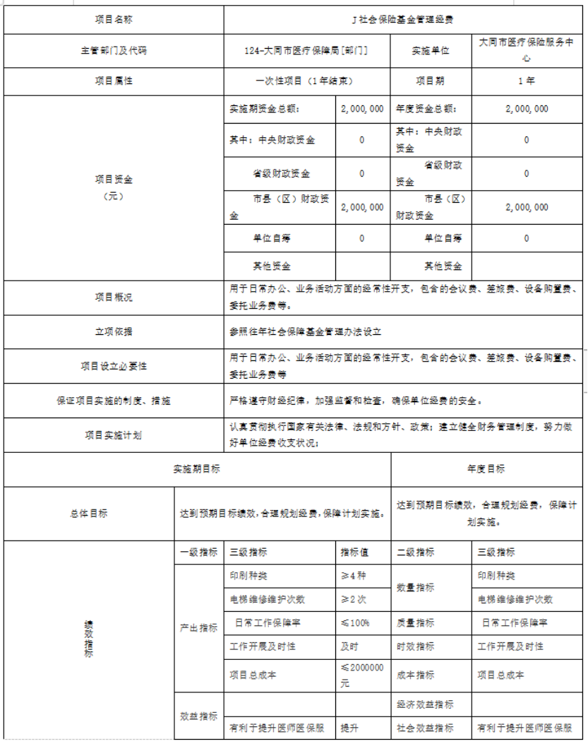 (9)大同市医保中心社会保险基金管理经费绩效目标申请表