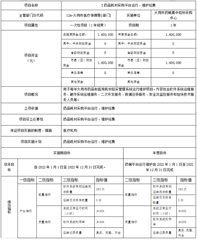 (7)大同市医保中心医疗保险系统维护运行经费绩效目标申请表