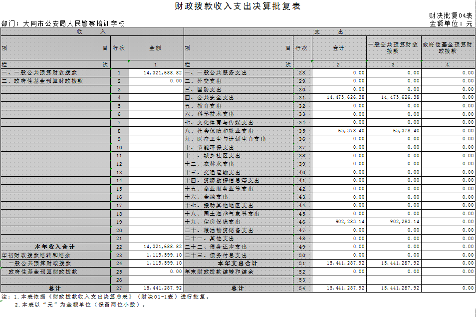 注:1.本表依据《收入支出决算总表》(财决01表)进行批复。 |