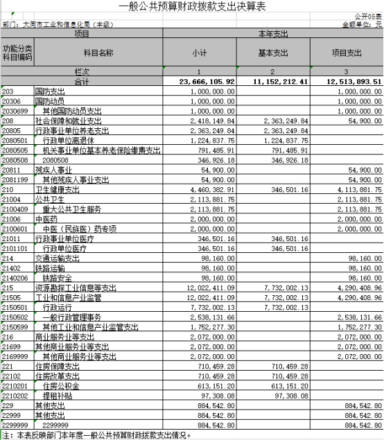 大同市工业和信息化局(本级)2021年度单位决算公开