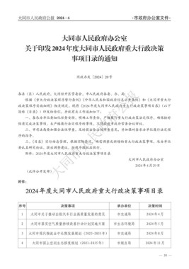 政决策程序实施细则》相关规定,现将《2024年度大同市人民政府重大行政决策事项目录》(以下