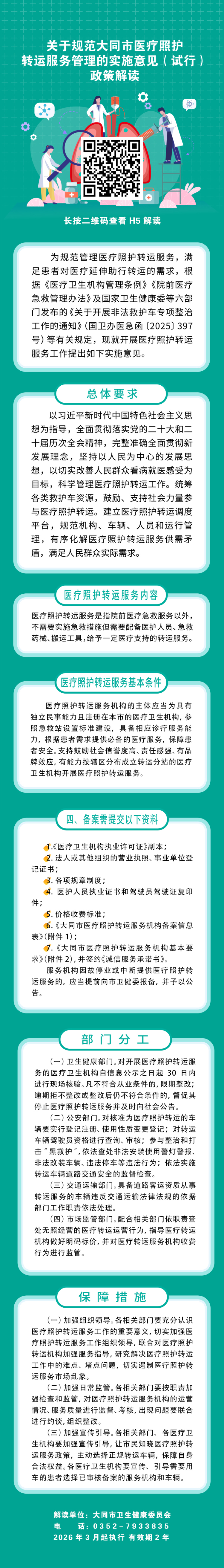 图解《大同市医疗照护转运服务管理的实施意见(试行)》