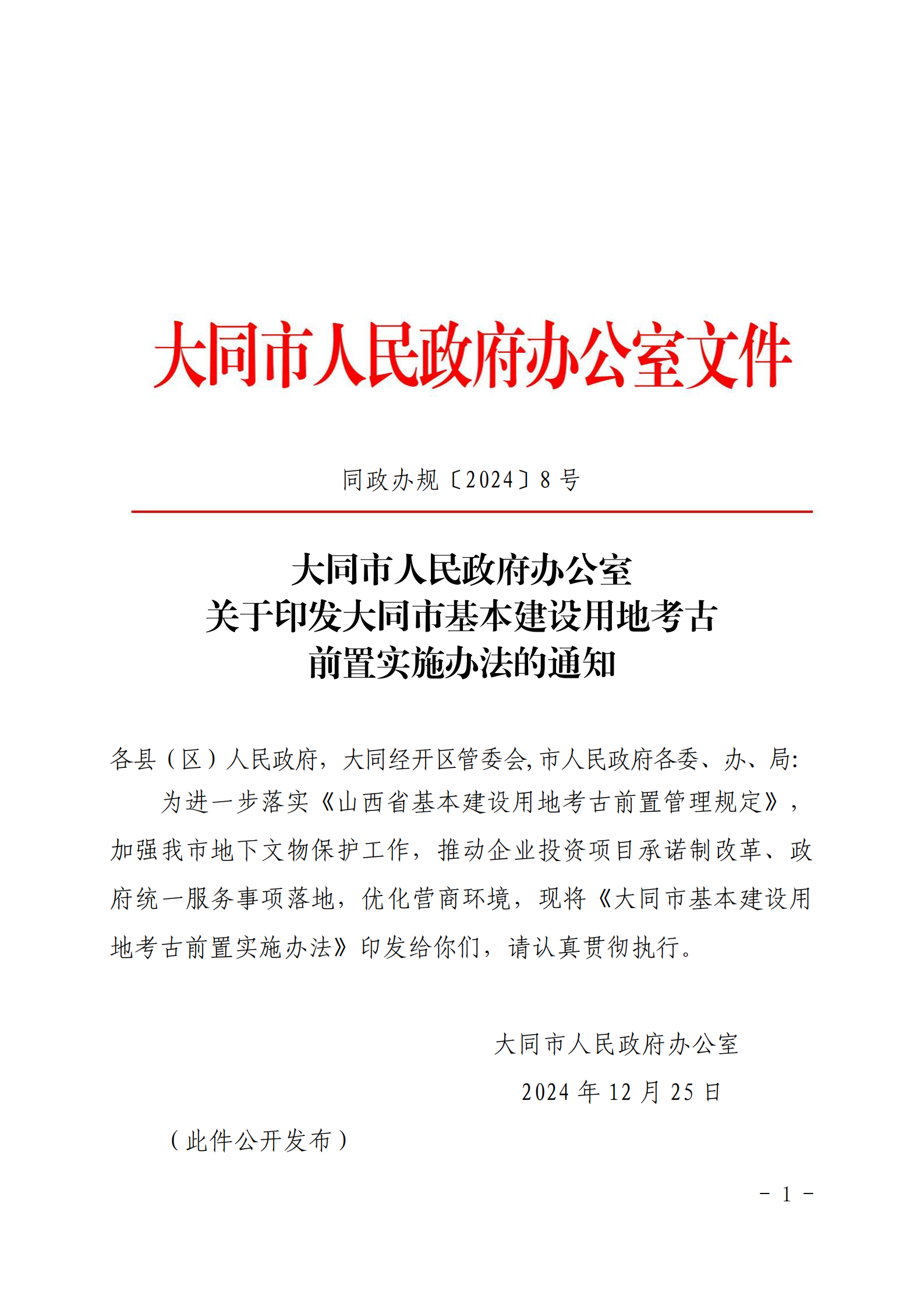 关于印发大同市基本建设用地考古前置实施办法的通知