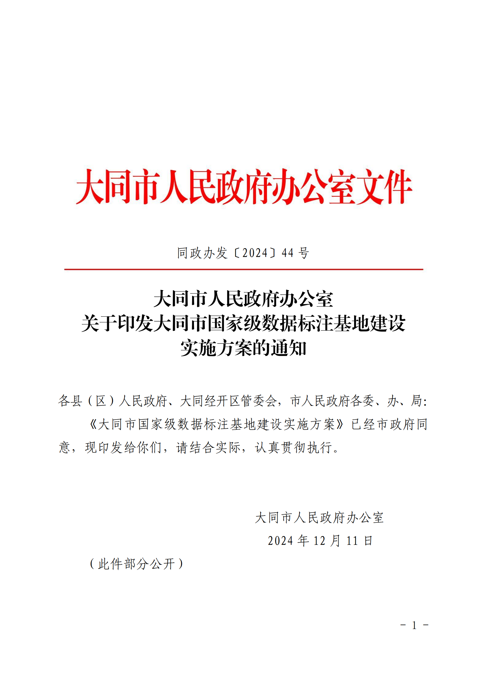 大同市人民政府办公室关于印发大同市国家级数据标注基地建设实施方案的通知