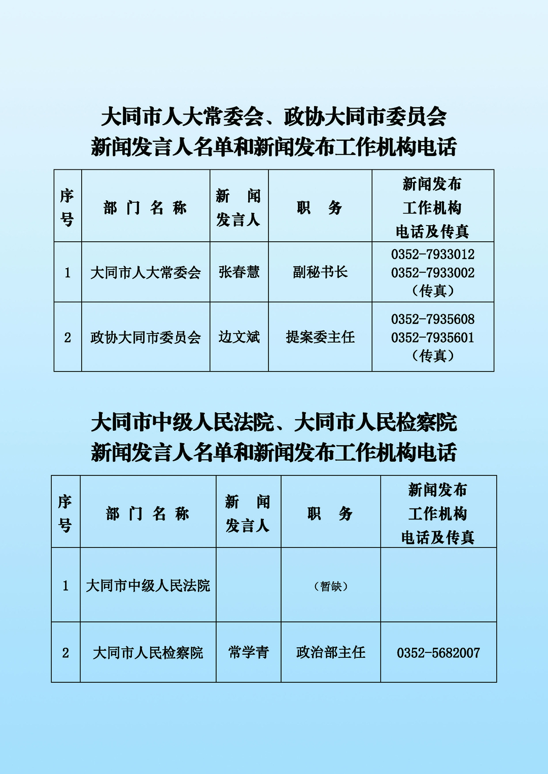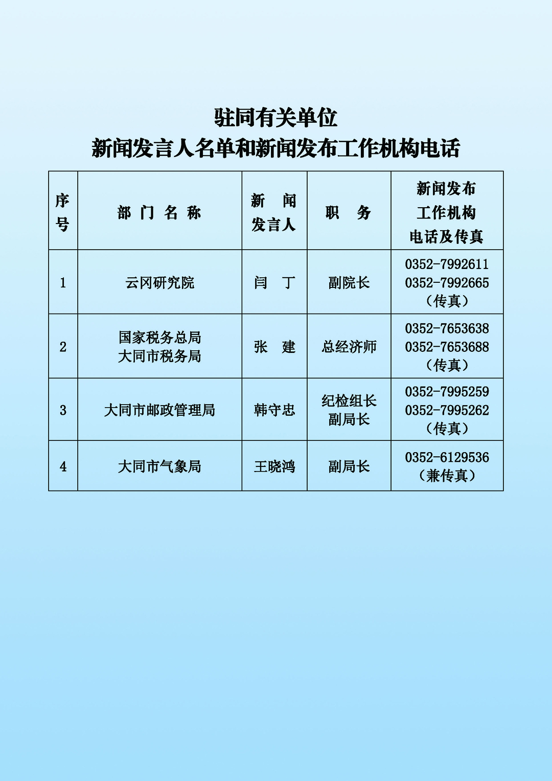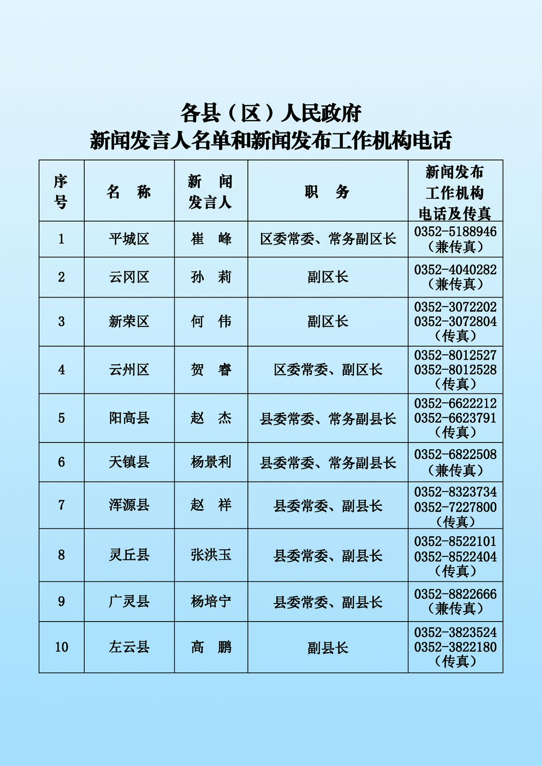 2026年大同市、县(区)党委、政府新闻发言人名单及新闻发布工作机构电话