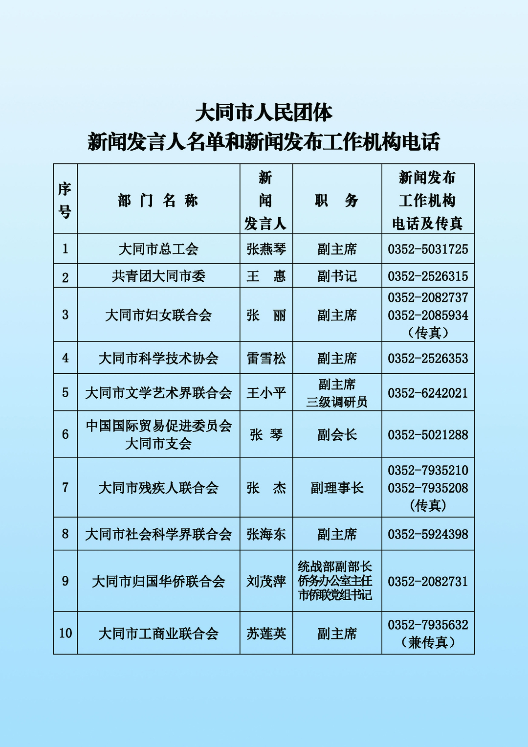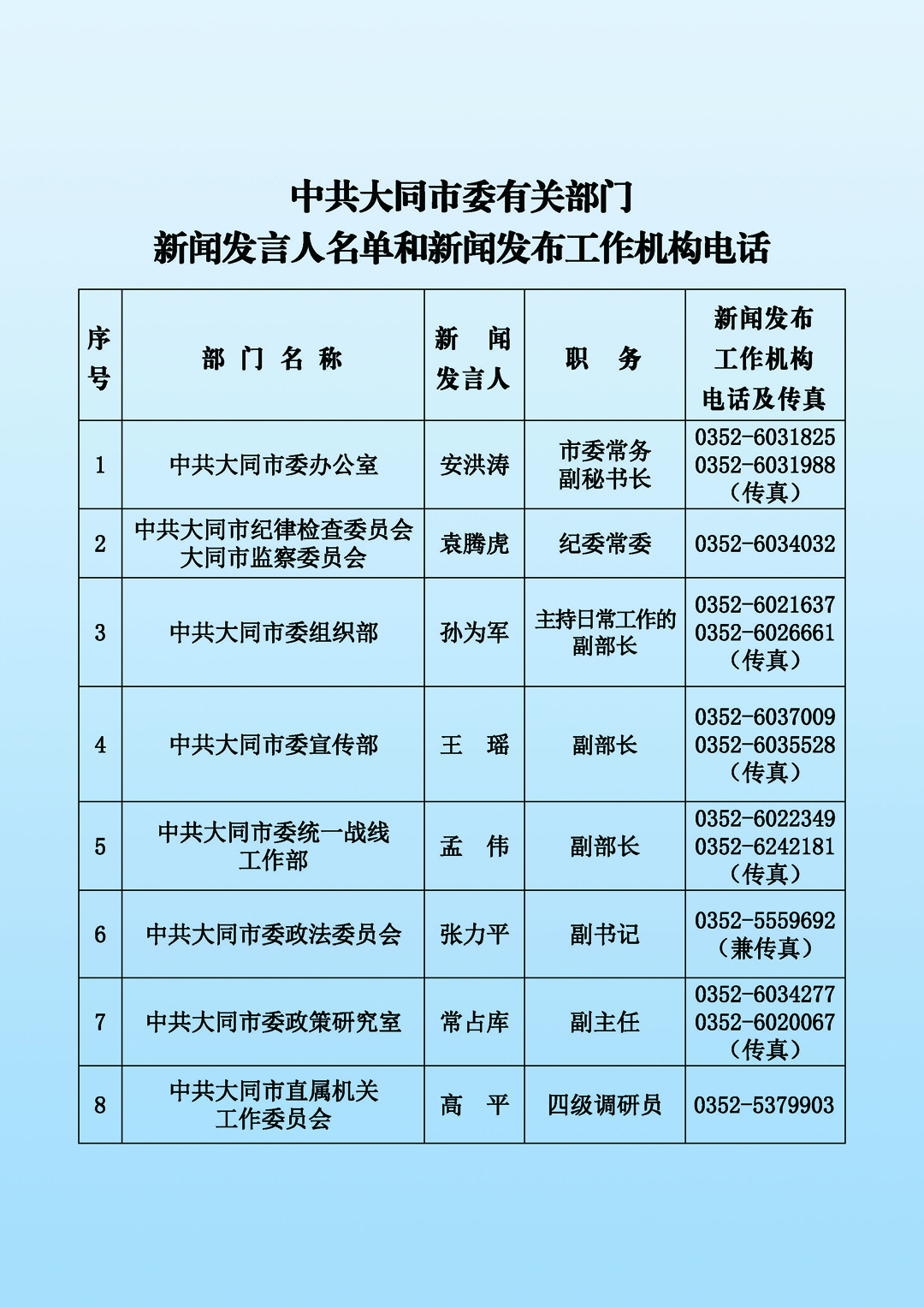 2025年12月30日,中共大同市委宣传部(大同市人民政府新闻办公室)向社会公布2026年大同市、县(区)党委、政府新闻发言人名单及新闻发布工作机构电话。