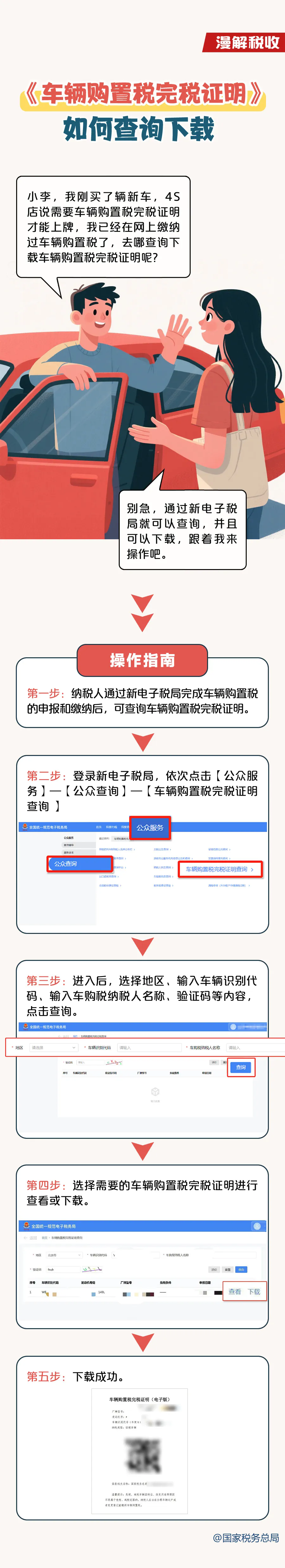 漫解税收|新车上牌,如何通过电子税务局查询下载《车辆购置税完税证明》?