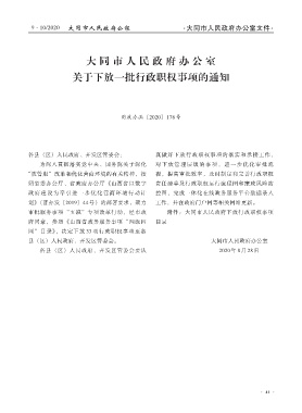 9·10/2020 大同市人民政府公报 ·大同市人民政府办公室文件·