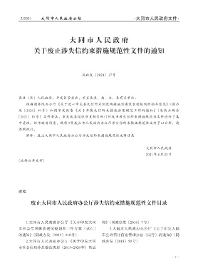废止大同市人民政府办公厅涉失信约束措施规范性文件目录