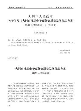 《大同市推动电子商务高质量发展行动方案 (2021-2025年)》已经大同市人民政府同意,现