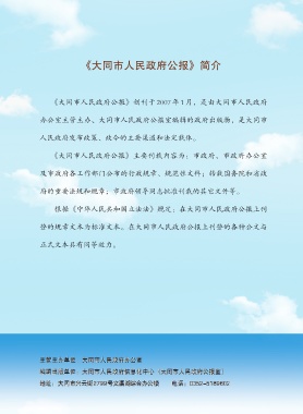 办公室主管主办、大同市人民政府公报室编辑的政府出版物,是大同市