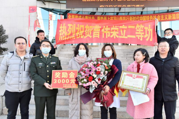 1月6日至7日,大同市平城区政府副区长王义萍带队为平城区籍荣立二等功、三等功的9名现役军人家属送立功喜报,区人民武装部、区退役军人事务局有关负责同志参加。